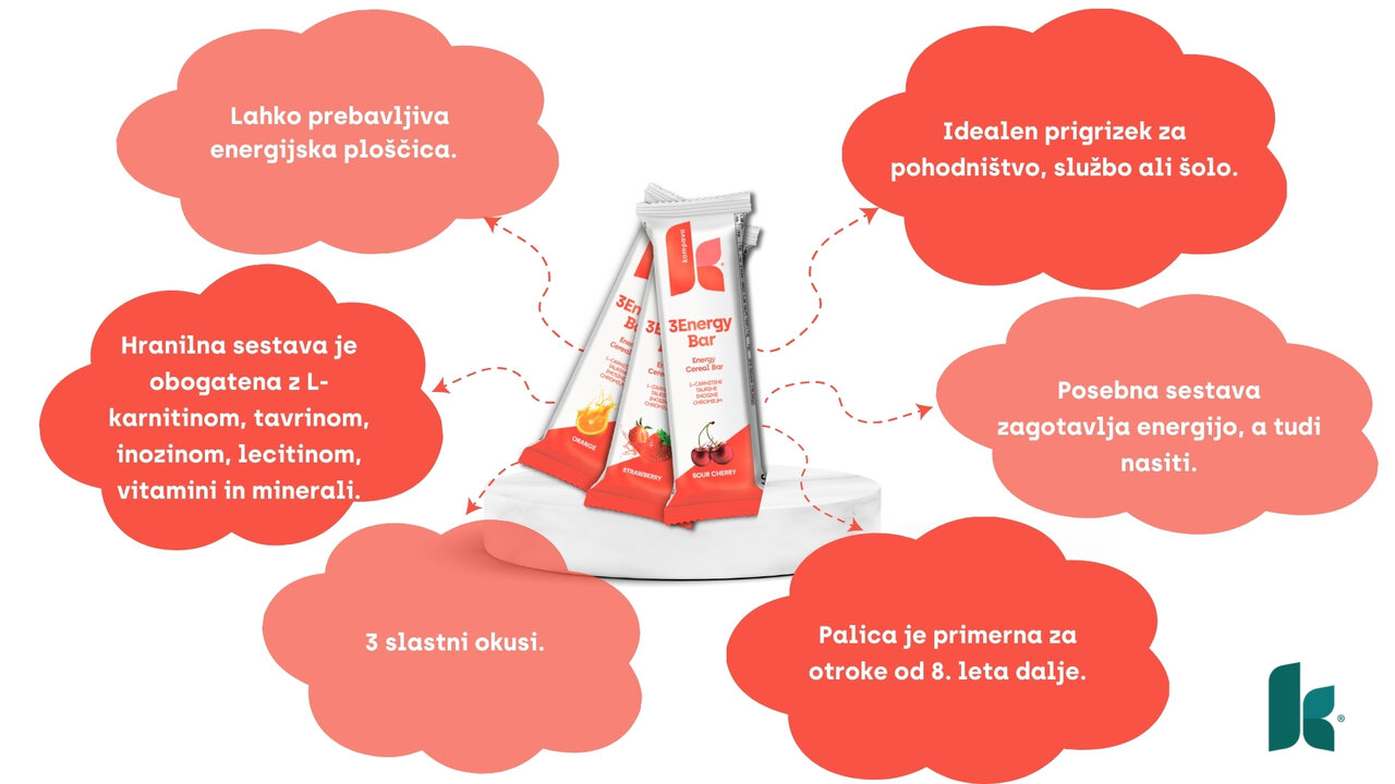 Energijska ploščica 3Energy Bar je popolna kombinacija okusne poslastice in učinkovitega vira energije. Energijska žitna ploščica je na voljo v 3 okusih z okusnim želejem in okusno glazuro. Na voljo imate ploščice v okusih: