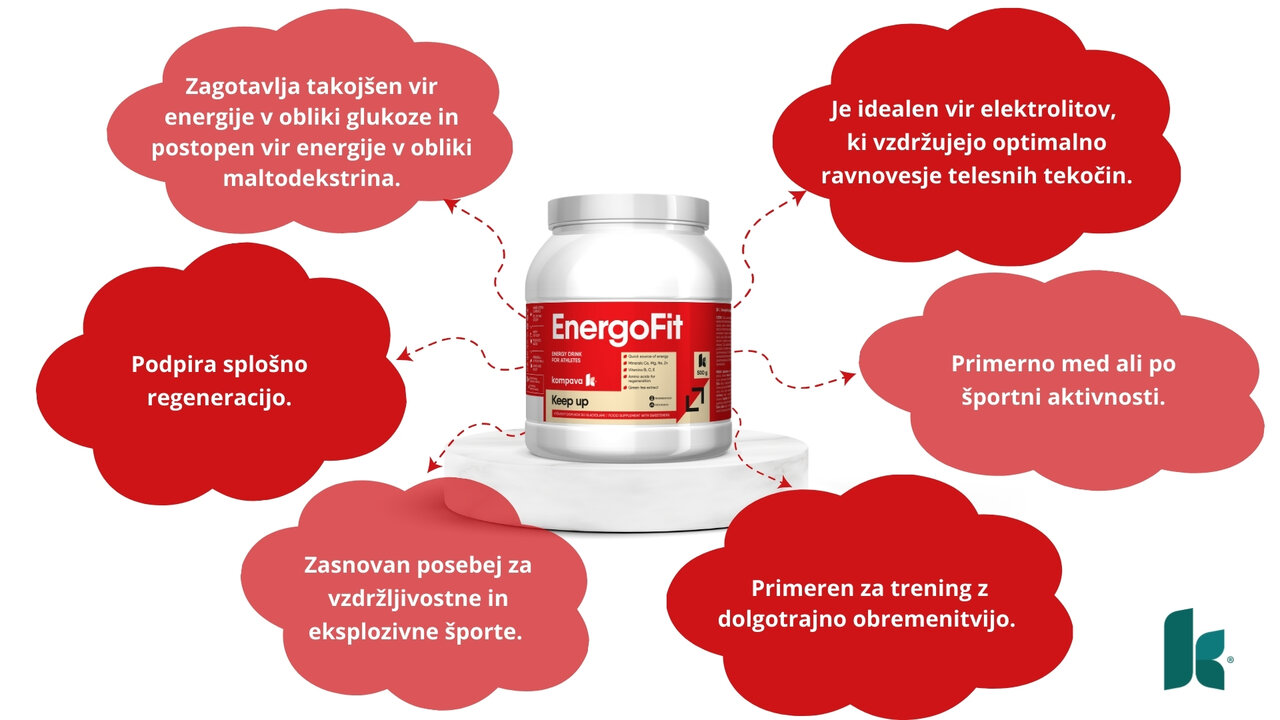 Izotonične pijače so praktična in učinkovita rešitev za športnike, ki želijo optimizirati svojo zmogljivost in hidracijo med fizično aktivnostjo. EnergoFit predstavlja visoko učinkovit energetski napitek. Ponuja hitro dostopen vir energije v obliki ogljikovega hidrata glukoze in postopni vir energije v obliki maltodekstrina. Zaradi vsebnosti aminokisline L-glutamin prispeva k regeneraciji organizma. Ekstrakt zelenega čaja deluje antioksidativno in ščiti organizem pred prostimi radikali.