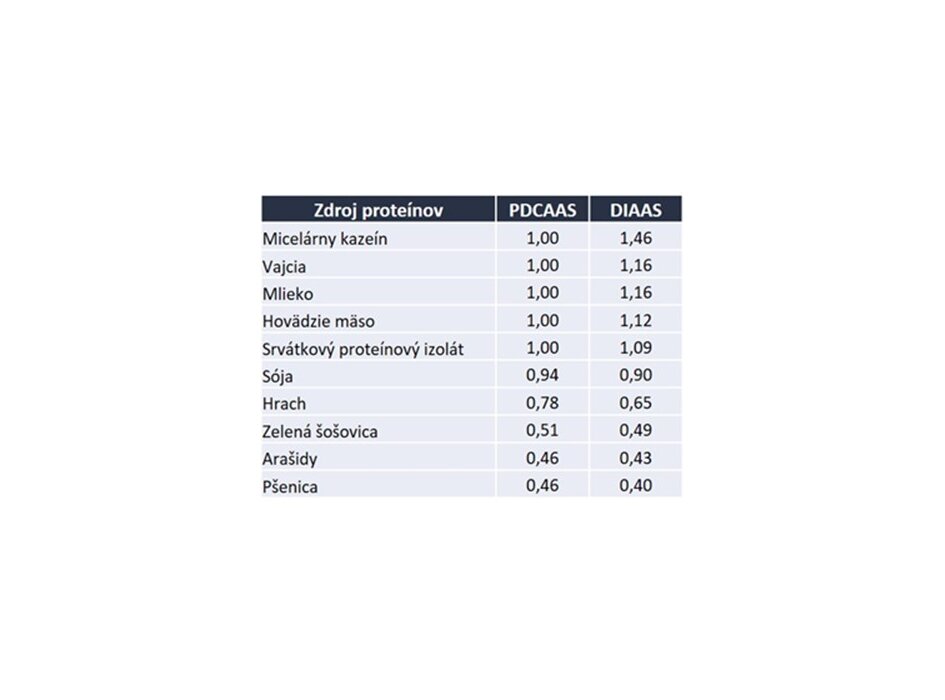Tabla št. 1: Ocena PDCAAS in DIAAS različnih virov beljakovin