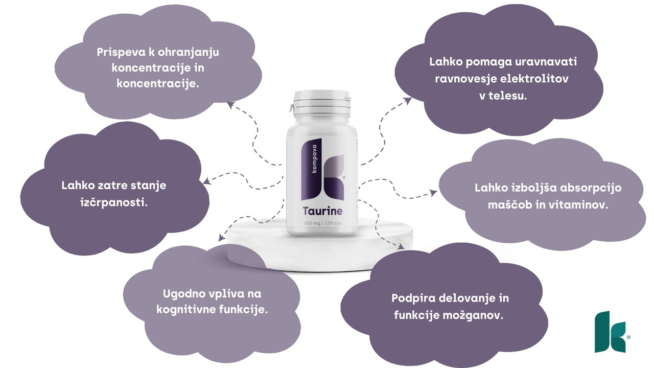Tavrin ima pozitiven vpliv na zmanjšanje utrujenosti pri voznikih, ohranjanje koncentracije in osredotočenosti pri zahtevnem delu, prispeva k izboljšanju psihične odpornosti in tolerance na stres. Prav tako prispeva k izboljšanju absorpcije maščob in vitaminov ter podpira regeneracijo po napornem treningu. Uživanje tavrina lahko prispeva k izboljšanju delovanja in funkcije možganov tudi v starejših letih. Ima ugoden vpliv na občutljivost celic na inzulin, s čimer pomaga premikati glukozo iz krvi v celice.