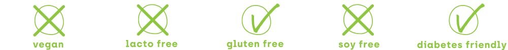 - 25 % beljakovin - kombinacijo koncentrata mlečnih beljakovin in hidroliziranih kolagenskih peptidov.