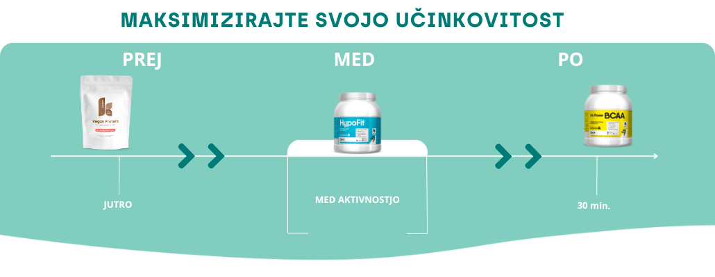 - Rastlinske BCAA 2:1:1 – BCAA je skupina treh esencialnih aminokislin: valin, levcin in izolevcin. Te aminokisline imajo pomembne vloge v telesu, zlasti v mišičnem tkivu – podpirajo regeneracijo in zaščito mišične mase.